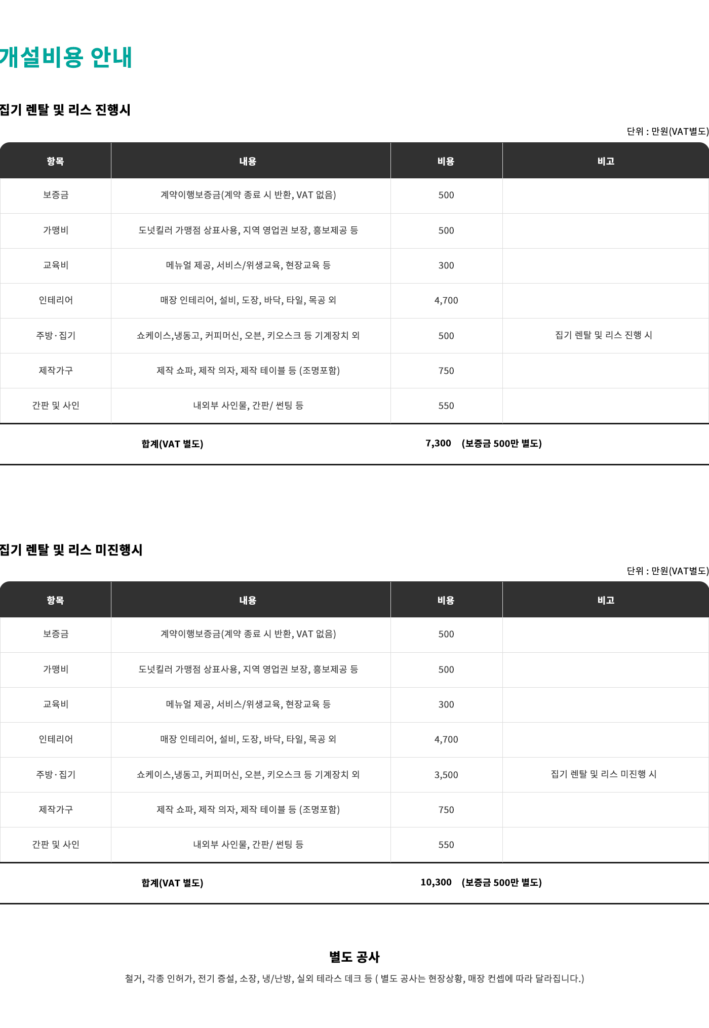 개설비용